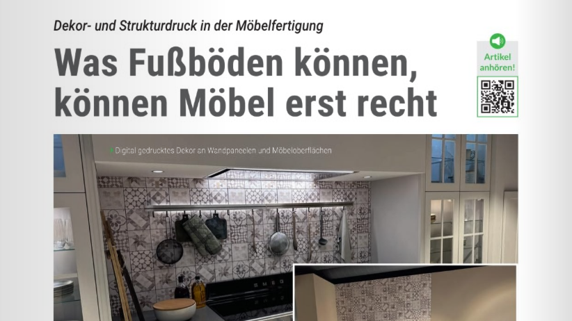 Fußböden mit Digitaldruck sind kaum wegzudenken. Jetzt werden auch Möbelfertiger auf die Technik aufmerksam. Von kurzer Rüstzeit bis passgenauer Stückzahl reichen die Vorteile - und flexibel installierbar ist die Technik obendrein.